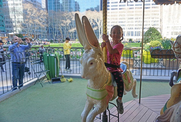 Peruse books in the Reading Room: This outdoor space, located at mid-park near 42nd Street, offers an outdoor space stocked with well-worn children's books and kid-sized tables and chairs. The park hosts frequent family performances, including its summertime Saturday series with story times, musical performances, magic shows, and character appearances.