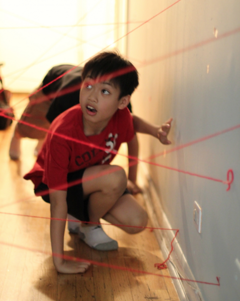 Laser Maze: In our front hall I taped lengths of red yarn criss-crossing the length of the hall. When the kids came back from their spy training, they had to get through the obstacle course, trying not to touch a laser. We told the kids they just had to see the birthday cake, but...
