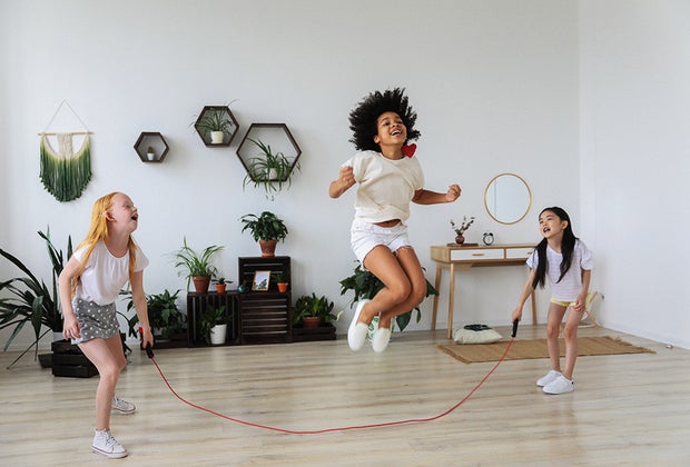 Keep in mind that a tree, column or post can always stand in as an extra child to "turn" the rope. For games that require something longer like a double-dutch jump rope, you can tie a couple of kids jump ropes together, which works out just fine for my daughters. Once you’re all jumped out, we’ve got way more energy-busting activities to get up and off the couch!