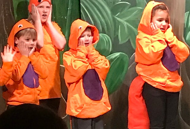Kids put on a performance of "Dinosaurs Before Dark" at Off Broadway Children's Theatre. Photo by the author