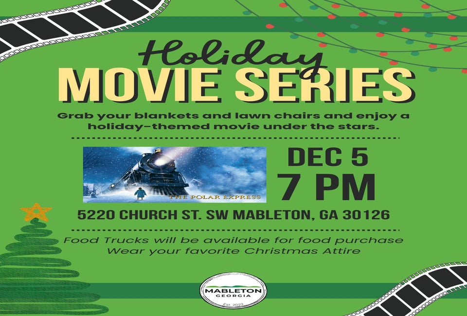 Bring blankets and lawn chairs to watch The Polar Express at Mableton Town Square Park. Food trucks will be on-site and you are welcome to bring coolers and snacks.