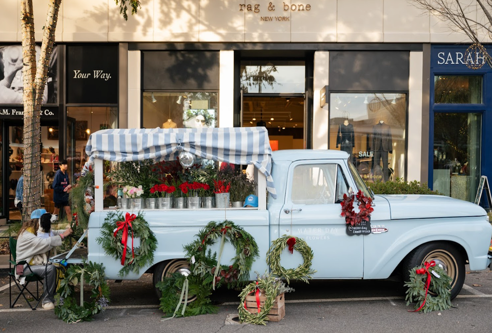 Mater Day Flower Truck selling holiday wreaths, by Frances Valentine | 12 pm – 7 pm