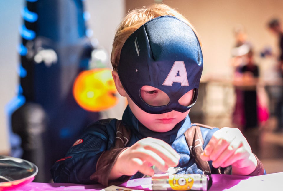 Space explorers can also decorate a treat bag, watch Monsters v. Aliens: Mutant Pumpkins from Outer Space, and journey through a twisting “corn” maze on the back patio with special black light activities.