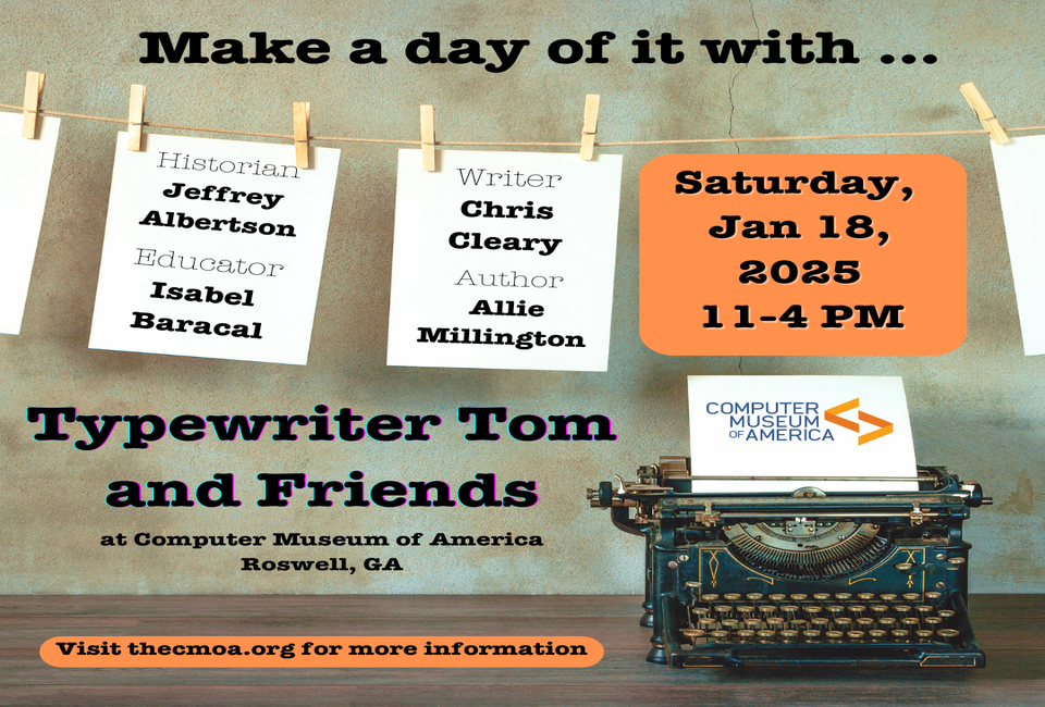 Tom will be here with another amazing collection of vintage typewriters for you to try.