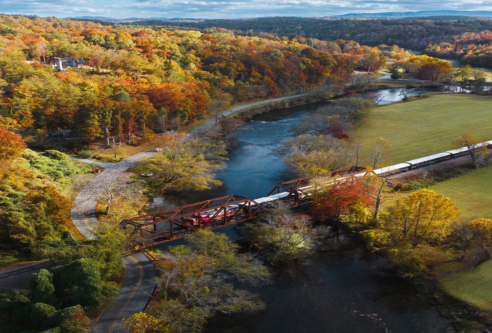 Enjoy the stunning fall foliage on the 2-hour Fall Ridge. You’ll journey 26 miles roundtrip through the countryside along the Toccoa River, discovering winding rivers, rich wildlife, and the historic background of Blue Ridge.