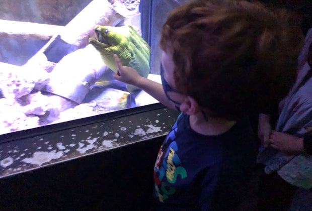Learn cool facts about the animals, like green moray eels have layers of mucus for protection. Photo by Melanie Preis