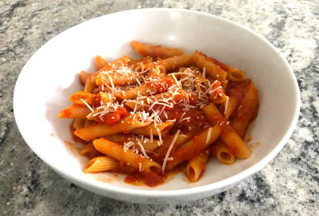 - Pour pasta and water into the tomato mixture. Increase heat to medium and cook for 16-18 minutes, stirring often, until pasta is cooked (tender but not mushy). Be sure to occasionally scrape sides of pot to prevent pasta from sticking. Stirring sauce is a great job for kids; consider pulling up a stool to the stove to make it easier.