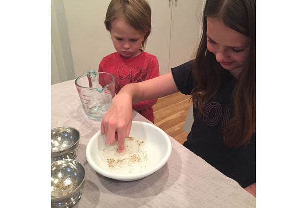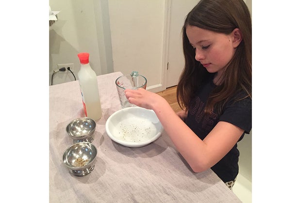 Now dip the tip of your finger into the liquid dish soap—you don’t need much.