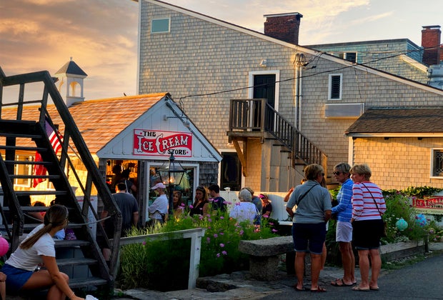 A stroll by Rockport's shops is more fun with ice cream. Photo courtesy of Catherine Aillon.