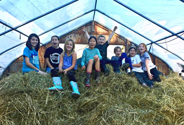 The haypile makes for a great photo op at Chip-In Farm.