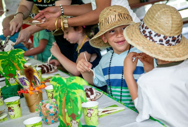 Animal-themed party goods are part of the fun at the zoo.