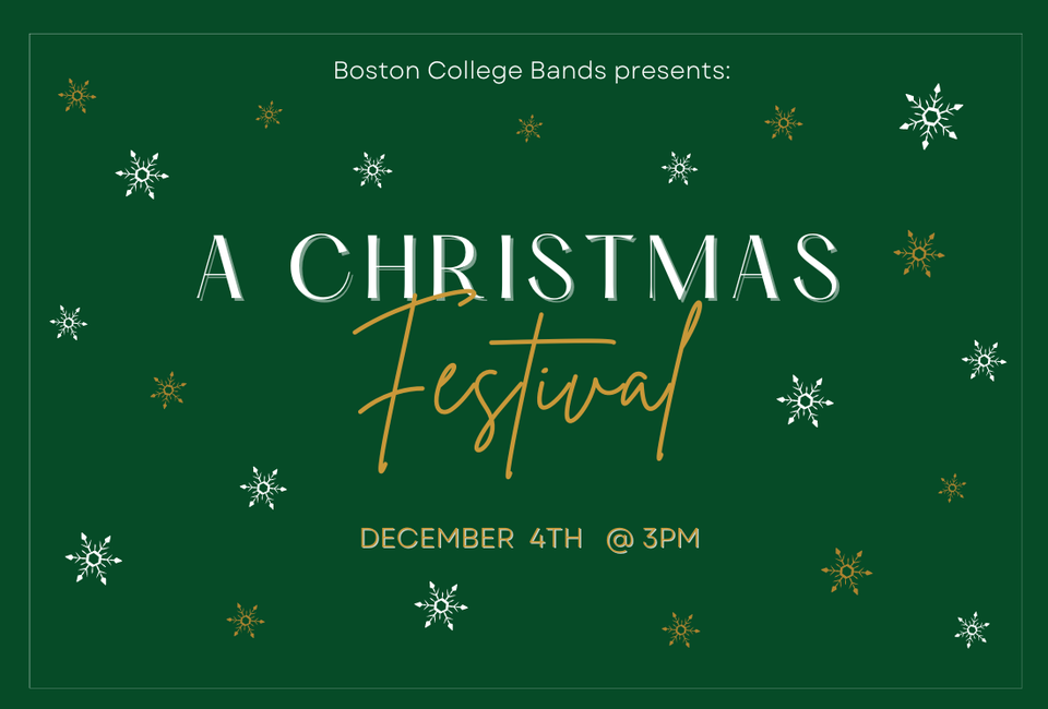 The Boston College Bands, in partnership with Santa, are thrilled to present A Christmas Festival, an annual Christmas concert featuring three bands playing Christmas classics such as "The Nutcracker." Kids can bring letters to Santa and check out a percussion petting zoo after the concert.