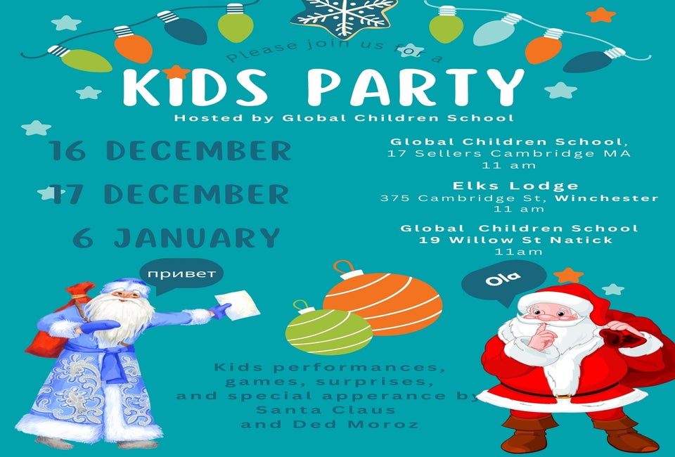 Global ChIldren School locations are hosting their annual Kids Winter Holiday celebration. Kids will be able to do holiday crafts and take a photograph with Santa and Ded Moroz who will be in attendance!