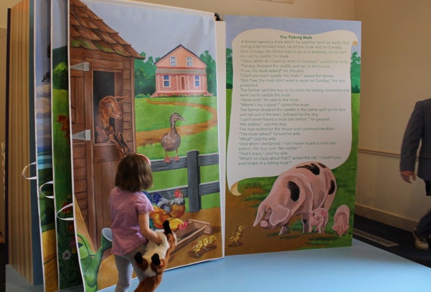 Curious Tales: This room features a gigantic, 20-feet by 8-feet storybook that doubles as a stage. The pages in the book actually turn, providing lots of fun backdrop options for your little performers. The room also has tons of dress up costumes and props to help kids' stories come to life.