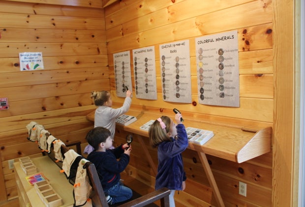 Discovery City: The biggest of the exhibits, this beautiful wide open room is filled with interactive stations perfect for inquisitive kids and tinkerers. Kids will find: a geology section where they can examine and identify rocks; a very cool air tube where kids can fly scarves and more to examine wind patterns; and a collection of tools and blocks to build with.