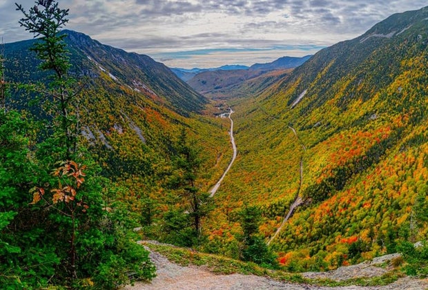 Fraconia Notch has it all—hiking, biking, even ice climbing and skiing in the winter. However, autumn is one of the best times to visit for its amazing foliage and views of the waterfalls. Each trail offers something a little different. For example, the hike to Artist's Bluff and Bald Mountain is a brisk 1.5 miles, providing beautiful views overlooking the whole park. The hike to Cannon Mountain and Lonesome Lake will take a bit longer, at 5.5 miles, but the White Mountain views at the end may be worth it.
