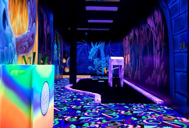 Black Light Mini Golf will challenge and entertain kids. Photo courtesy of Nomads.