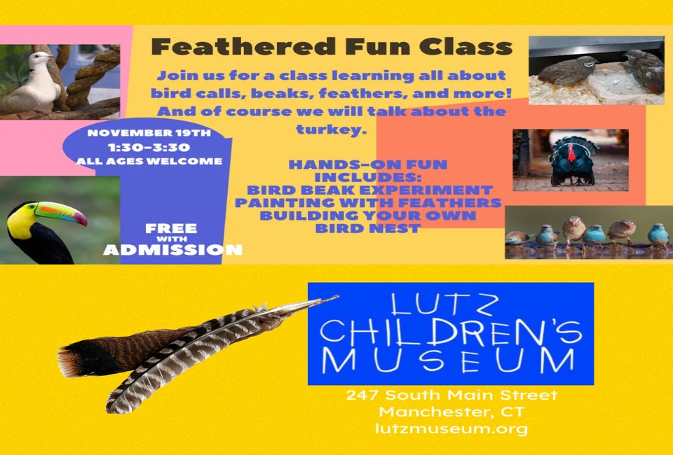 Join thr Lutz for a class learning all about bird calls, beaks, feathers, and more! And of course they will talk about turkey.