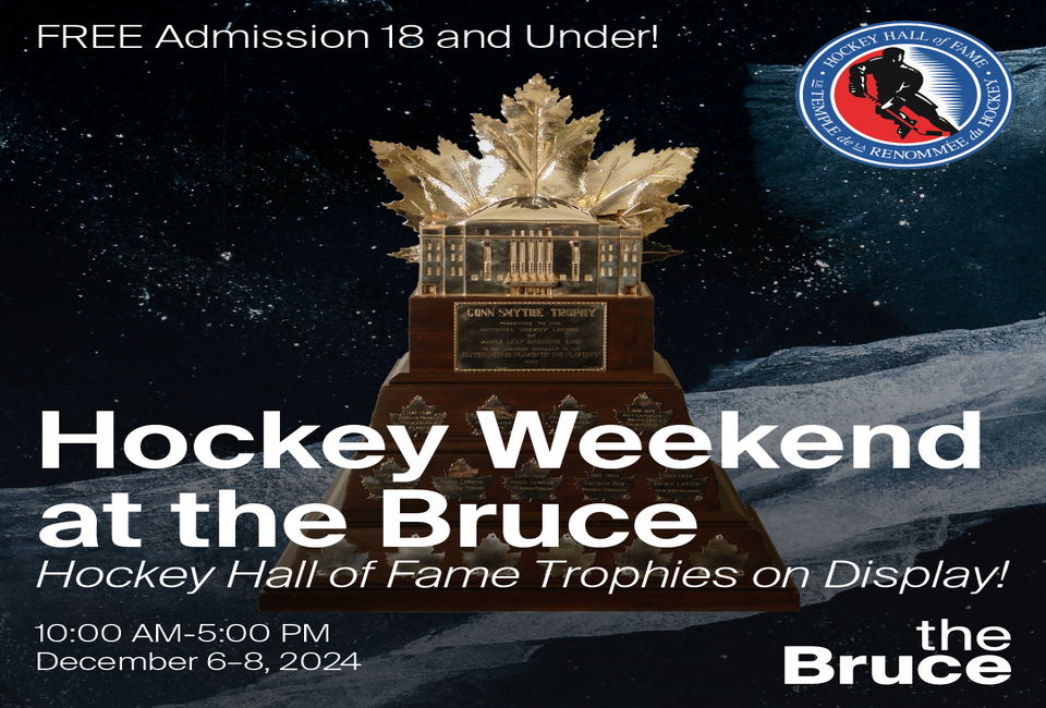 In addition, several events will be held at the Bruce while the Hockey Hall of Fame trophies are on display, Friday, December 6, 12-5:00 pm, Saturday and Sunday, December 7 & 8, 10:00 am-5:00 pm, free with admission to the Bruce, members are free: