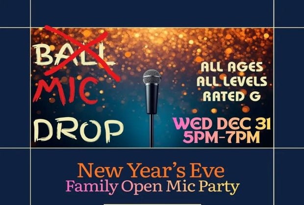Forget the ball drop, join Wilder Moon Collective for a MIC DROP and ring in the new year with a Family Open Mic Party!