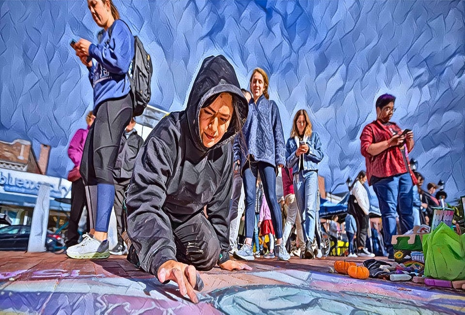 Stroll the Chapel and Broadway districts to view and vote on elaborate Halloween-themed chalk art designs by more than 65 talented artists at 2 locations.