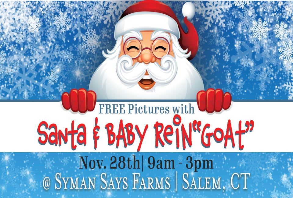 FREE Pictures with Santa & His Baby ReinGoat – One Magical Day Only! Syman Says Farms Kick off the most festive weekend of the year with a truly unforgettable holiday experience at Syman Says Farms! Santa Claus is flying in—with one of his adorable baby rein-goats in training—and they’re ready for photos, smiles, and all the Christmas joy your family can handle.