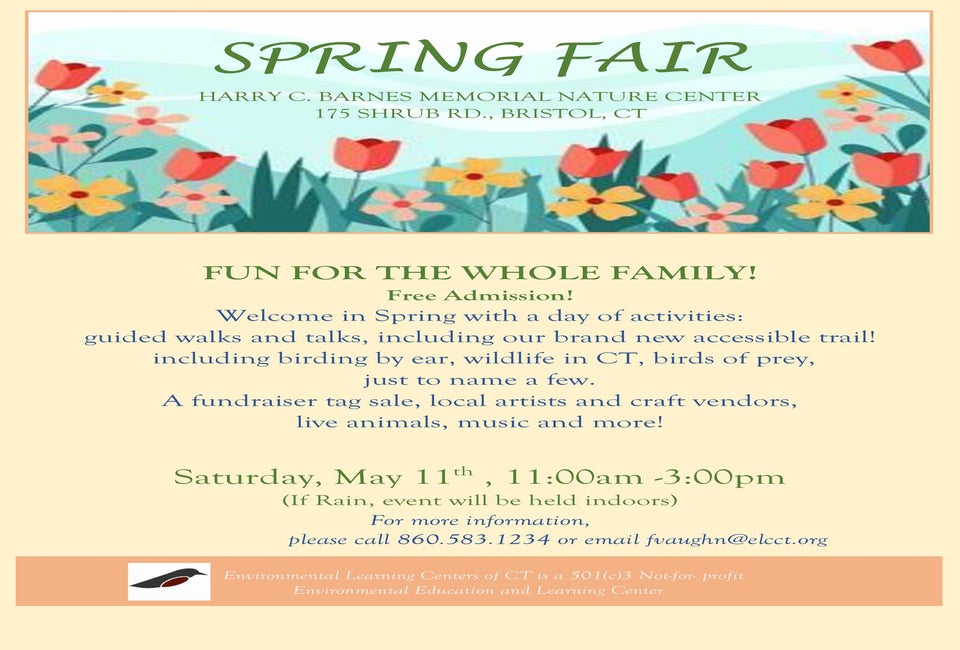 Fun for the whole family. Welcome Spring with a day of activities: guided walks, talks, and a new accessible train! Enjoy learning about wildlife in CT, birds of prey and crafts, food & drink by the Rotary Club, local artists and vendors along with rock & minerals vendors too.