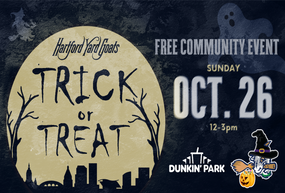 The Yard Goats invite all the little ghouls and goblins to a spooktacular free trick-or-treat event on October 26th, 12-3 pm at Dunkin' Park. Costumes encouraged, treats guaranteed.