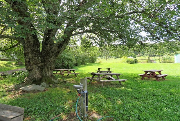 You can also stroll rocky paths (wearing closed-toe shoes is best) to the apple orchard, while admiring wild flowers and waving to the occasional tractor going by. Take your time and enjoy the fresh air, fragranced by a soothing combination of lavender, chives, and hay.
