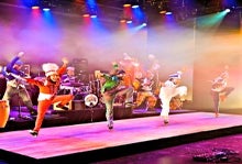 Rhythmic Circus is an 11-member performing arts troupe comprised of the incredibly talented Roots City Band and four amazing rhythm-style tap dancers. The plot-less Feet Don't Fail Me Now! is an hour-long party featuring 14 genre-busting numbers ranging in style from beat box, to a cappella, to salsa, to jazz, to funk, to rock. The dancers' fast-paced percussive tapping brings another level of rhythm to the pounding music.