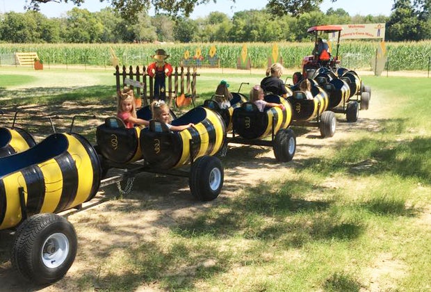 The bumbling bee coaster rides past the corn maze. Photo courtesy Courtney Cauthen.