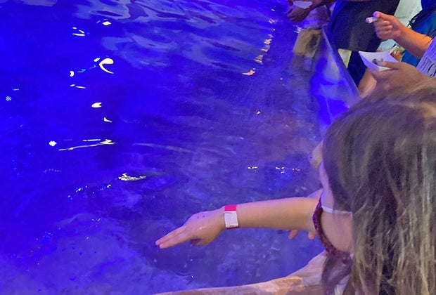 Plunge a hand into a tank of cold water and pet a prickly sea star at the Creature Feature, a touching pool loaded with anemones, snails, sea cucumbers, and several kinds of sea stars from the Pacific Northwest. If your family lands on the other side of the Shark Bridge, there's also a shark-touching pool, featuring the friendliest of the fiercest. Or, if stingrays are more your style, you can pet or feed one of these friendly fish at the Stingray Beach Club (strollers prohibited).