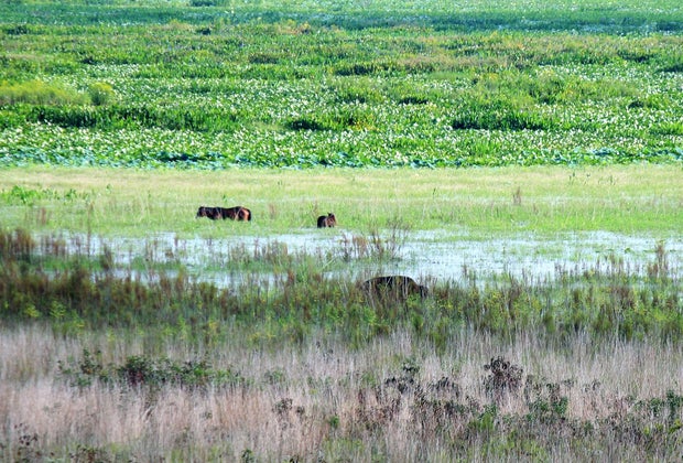 Bison and wild horses roam the prairie at this state park. Visitors will also see an abundance of alligators along the parks eight trails.