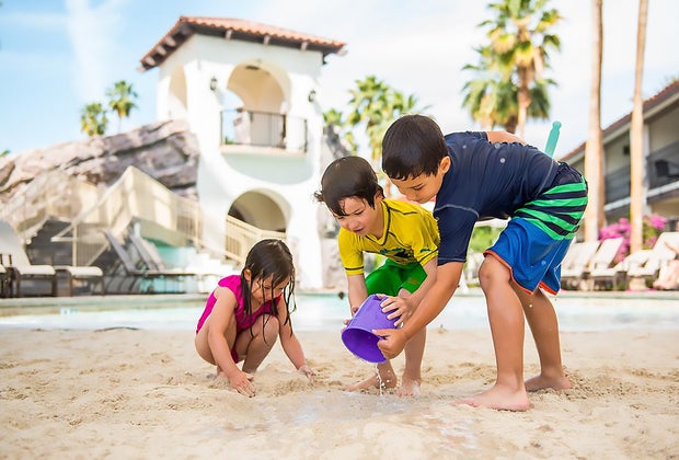 Omni Rancho Las Palmas Resort & Spa's Splashtopia has a sandy beach, water slides, a lazy river, and more.