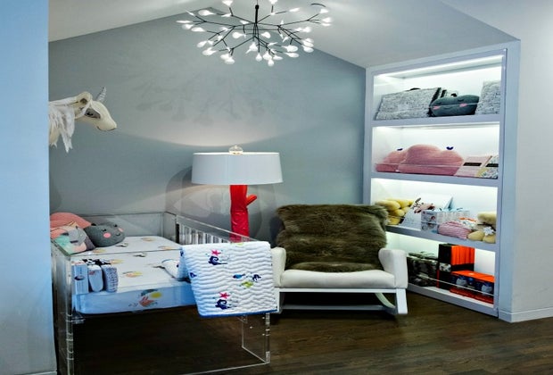 One of the four vignettes, or nursery layouts, lets parents imagine the possibilities.