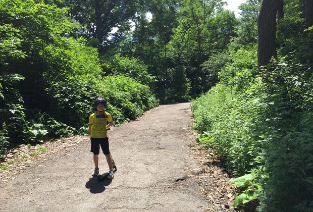 Our time spent here usually consists of the kids running the hiking trails, while my husband and I meander behind. My son became an avid bird-watcher in second grade (thanks to an inspiring teacher), and this city oasis has many species to spot. That's one of the things we love about this park—there's always something new to explore. Case in point: on our most recent visit, we met another hiker pondering an enormous hole in a rock wall that we later learned had been formed by a passing glacier. He had been coming to the park for a decade and was still making new discoveries—a new one to us as well.