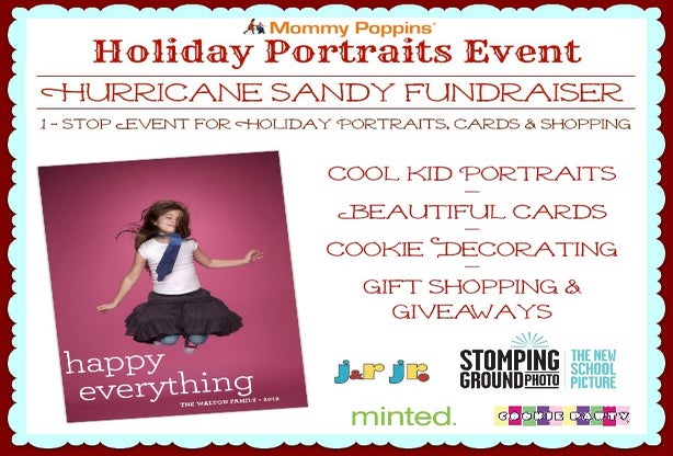 Mommy Poppins Holiday Portrait Hurricane Sandy Fundraiser takes place all day on Sunday, December 2 at J&R Jr. at 1 Ann Street at the corner of Park Row. Booking a session in advance is required, no walk-ins accepted. All proceeds will be donated to the Mayor's Fund to Advance NYC to help victims of Hurricane Sandy.