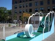 What really makes a trip to this playground worth while over the summer is The Golden Door Mini-Golf Exhibition of the Jersey City Museum. Located off the park on Pavonia Avenue between Eighth and Ninth Streets, the mini-golf course was created by local artists so each of the ten holes is not only functional but fun! There are loops, crazy slopes, mirrors and flags, and more. The mini-golf course is open daily from 10am to dusk and costs $5 per person.