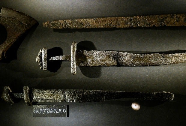 The role of war is downplayed at the exhibit, but these Ulfberht swords are sure to get the kids' attention.