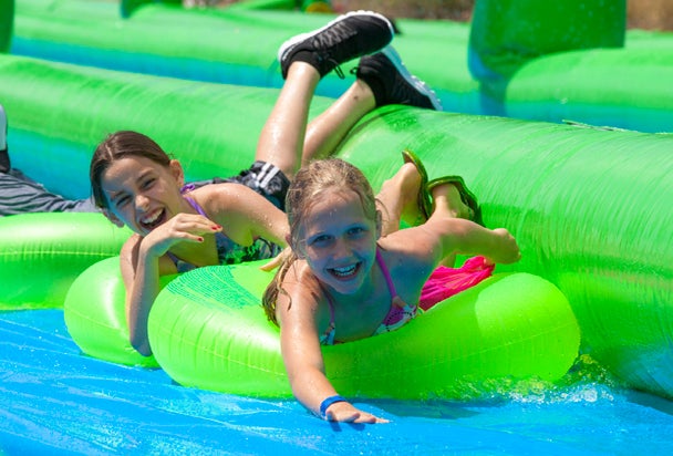 Water slides line the street during Summer Streets. Photo courtesy Slide the City.