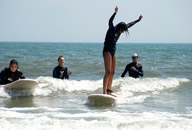 Catching some waves at Locals Kid Surf Camp. Photo courtesy of the camp.