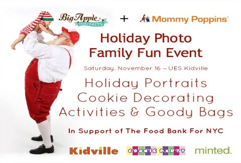 To make sure posing for holiday photos doesn't feel like a chore, we'll have fun family activities, like cookie decorating with Cookie Party, holiday crafts by Kidville, Mommy Poppins storytime and family goody bags. Bonus: This event will also help raise funds for the Food Bank For NYC to help more local families have a happy holiday season.