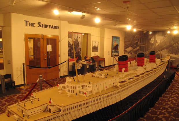 If your kids are old enough to know about The Titanic, it doesn't take much imagination to recognize the similarities between the two ships, with their old world splendor and immense scale. In fact, a model ship exhibit on the Promenade deck shows comparative sizes between a number of famous ocean liners: Titanic, Queen Mary, Queen Elizabeth (both), Lucitania, and others. The scale is truly awesome, and gets an extra kid filter with the recent arrival of a scale model made entirely from LEGOs. Kids inspired by the display can set to work on their own version at the Brick Shipyard (LEGO play area) around the corner from the models.