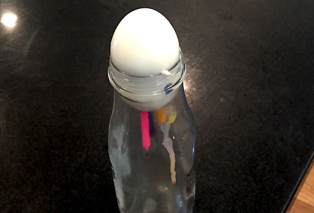 Pro tip: Rub butter on the egg to help it slide into the bottle.