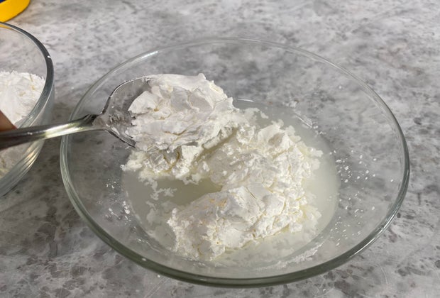 Slowly mix the cornstarch into the water, working to get the right consistency.