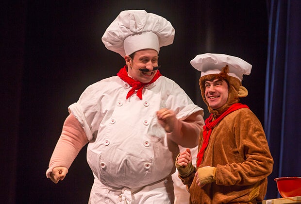 Kids will laugh their way through Curious George: The Golden Meatball at the Queens Theatre. Photo by Doug Dobos/courtesy of the production.