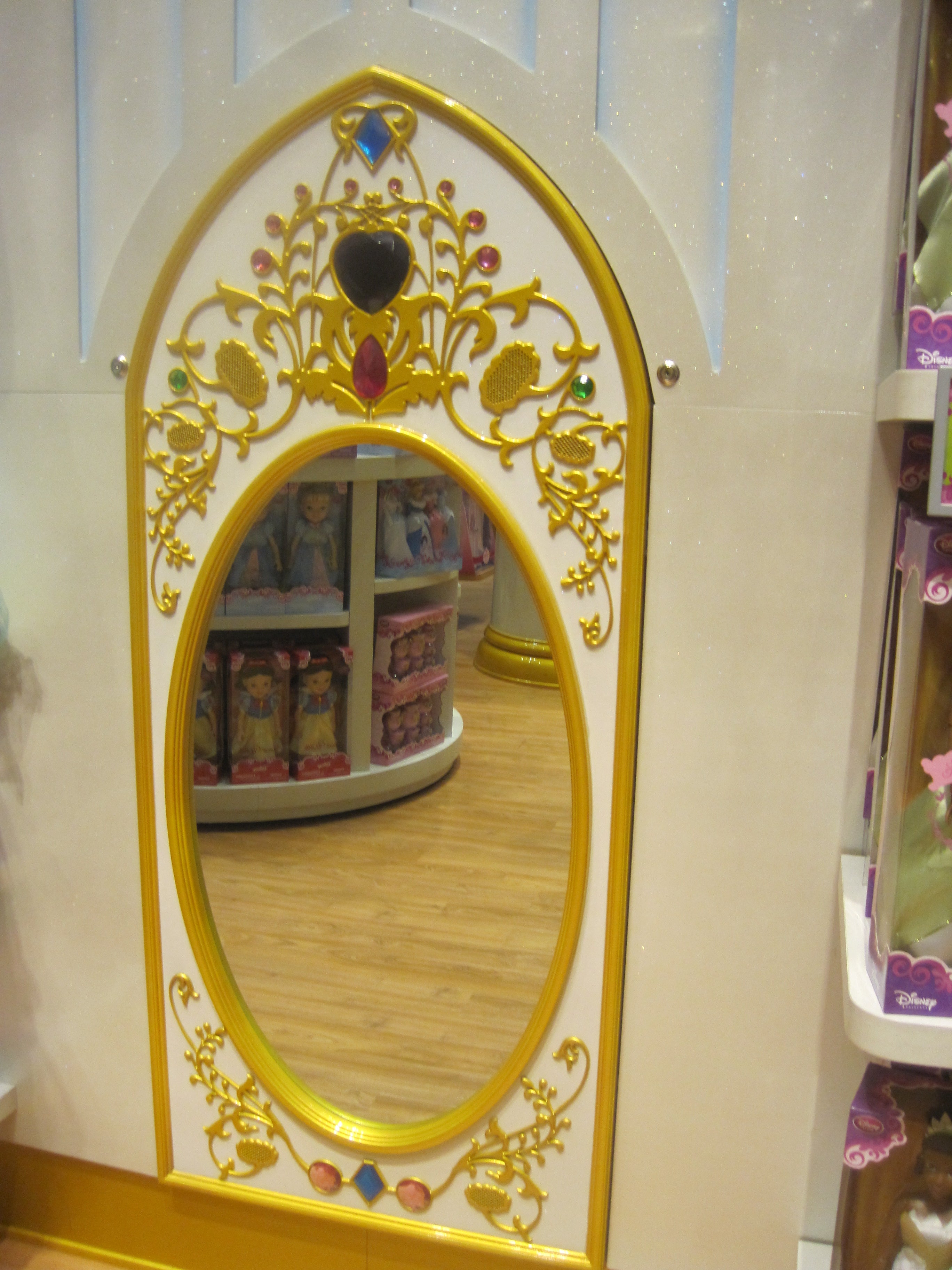 The store has an imagination theme inspired by Tinkerbell and there's a small section devoted to her, as well as Magic Mirrors that bring Disney characters to life. When children wave a wand, dress or crown in front them, princesses such as Cinderella, Belle, or Jasmine appear and tell a story.