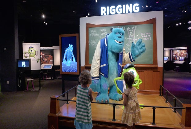 Kids will get different things out of the exhibit, depending on their ages. The oldest kids might be really fascinated by the math that goes into calculating backgrounds like blades of grass and houses in the sets, younger elementary kids will enjoy playing with camera distance and the flexibility of characters' limbs through hands-on activities, while the giant models of Buzz, Sully, and Dory are enough to capture the youngest kids' attention.
