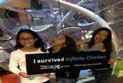 My 9-year old son and my 10-year old daughter—along with her best friend, pictured with the "I Survived the Infinity Climber" sign—approached the massive structure with open mouths, a single, "Whoa..." spoken at first sight of the 21,000 pound play space. The kids leapt toward it, deterred only by the friendly Science Center guards who needed to check their stature (minimum height for the Climber is 42 inches; there is a smaller, less demanding structure for younger kids in I Explore).