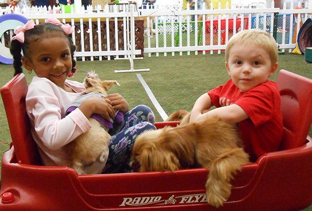 Does your child pine for pooches? At DogAbility Center—a local nonprofit offering canine interactions with specially trained dogs and dog therapists—there's now a 90-minute Pooch Party that lets children spend an hour with gentle, affectionate service dogs as they ride wagons, jump through hoops, run through tunnels, and play tug-of-war, then retire to a party room for pizza and cake. It's $300 for the first 10 children, and each additional guest is $15.